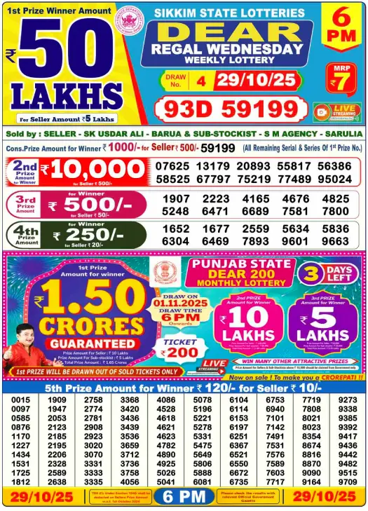 Lottery Sambad Day 6:00 PM 29.10.2025. You can find the Lottery Sambad Day result 29/10/2025. Nagaland State Lotteries 29.10.2025 Lottery Sambad Today Day Result at 6 PM. Dear Day result from 6:00 PM. Dear Dau Results.